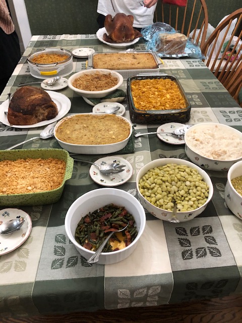ZT POUNDED some turkey, ham, dressing, butter beans, peas, 3 different casseroles and still made room for some Pecan Pie!! “Extra Room” courtesy of a pair of Russell Athletic ( although ZT would question the Athletic part in this particular application! ) 1989 grey sweat pants with lots of elastic and no drawstring after 31 years of use.
