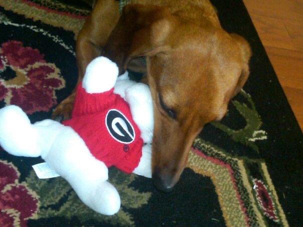 Next week I will be back with the snark and the bark. But this week I curse the fallen tree in my backyard, and I thank God for the blessings of my beloved pup. Attached is a pic of him chewing on a Georgia Bulldog. I loved that boy!